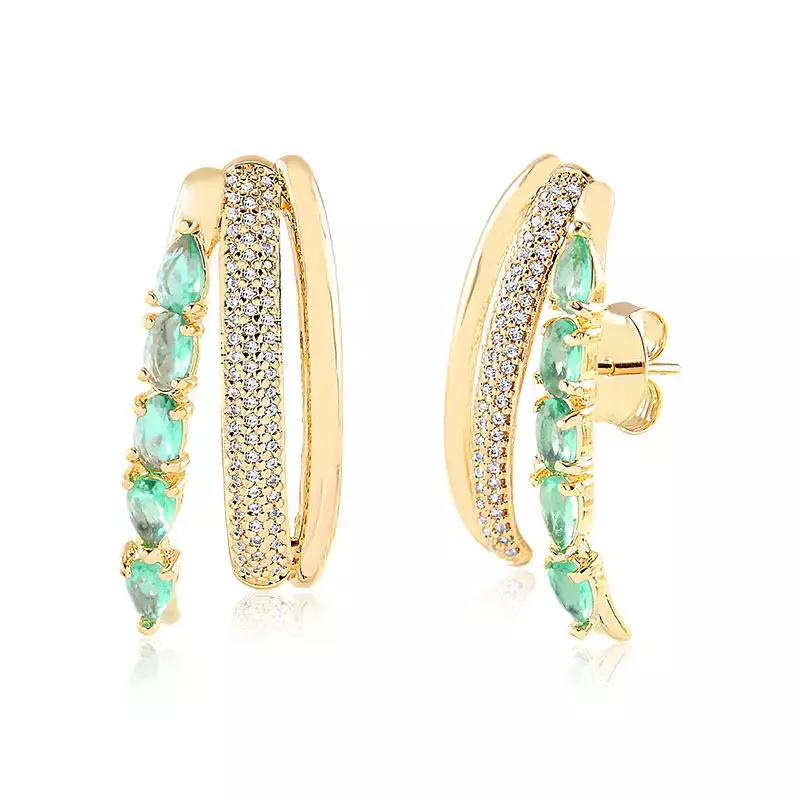 Brinco Ear Hook Triplo Liso + Micro Zircônia + Zircônia Gota